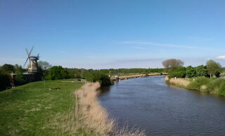Blick von der Ostebrücke bei Hechthausen nach Norden, links: Windmühle Caroline (1848)