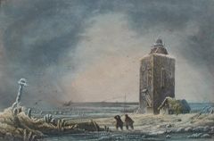 - 1814 dann tritt der Turm in eine neue Phase ein: Am 20. Dezember geht das von J. P. Repsold gebaute und eingerichtete Laternenfeuer in Betrieb. Dazu musste das Walmdach mit einer Laterne mit Abzugsrohr versehen werden. Damit war der bisherige See- und Wehrturm erstmalig zum Leuchtturm avanciert. Nebenher brannte aber noch bis zur Inbetriebnahme des kleinen Leuchtturmes 1815 die Blüse als Seezeichen. Beide zusammen zeigten als Richtfeuerstrecke die Passage über den Vogelsandsteert an. Zum Betrieb beider Türme werden je zwei Leuchtturmwärter auf Nebenverdienst eingestellt.