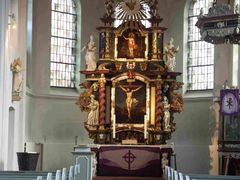 Mehr als 50 Jahre brauchte es, bis diese Missstände behoben wurden und 1886 der heutige, ansehnliche Kirchenbau im gotischen Stil nach Plänen des Hamburger Architekten Kirchenpauer entstand. Die Einrichtungsgegenstände wurden aus dem Vorgängerbau übernommen. Das älteste Ausstattungsstück ist das Bronze-Taufbecken von 1573. Ein Blickfang der Kirche ist der Barockaltar aus dem Jahr 1640. Um den Altar versammelt sich die Gemeinde zum Abendmahl. Dabei hat sie die drei Gemälde im Mittelpunkt des Altars vor Augen. Zuunterst ein Bild, auf dem Jesus mit seinen Jüngern das letzte Mahl hält, darüber Christus am Kreuz und oben der auferstandene Christus. Die Bilder vergegenwärtigen der Gemeinde den Ursprung des Abendmahls: Haltet es "zu meinem Gedächtnis".