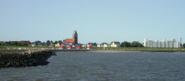 Die Grimmershörnbucht mit ihrem halbmondförmigen Bogen vom Fährhafen bis zur Kugelbake ist der vielleicht geografisch markanteste Ort in Cuxhaven.