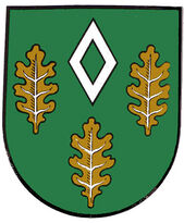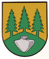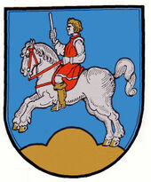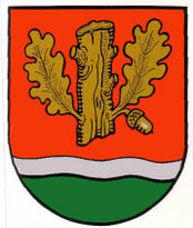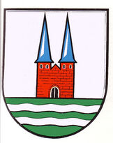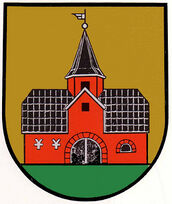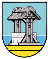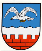 Das Stadtwappen zeigt ein Schild mit goldenem Grund, auf dem die schwarze Kugelbake am Fuß von blauem Wasser umspült wird. Über dem Schild befindet sich eine gemauerte Krone mit drei Zinnen.