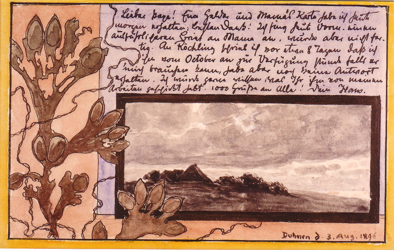 Dorf Duhnen, Aquarell und Feder, 1896, Künstlerpostkarte