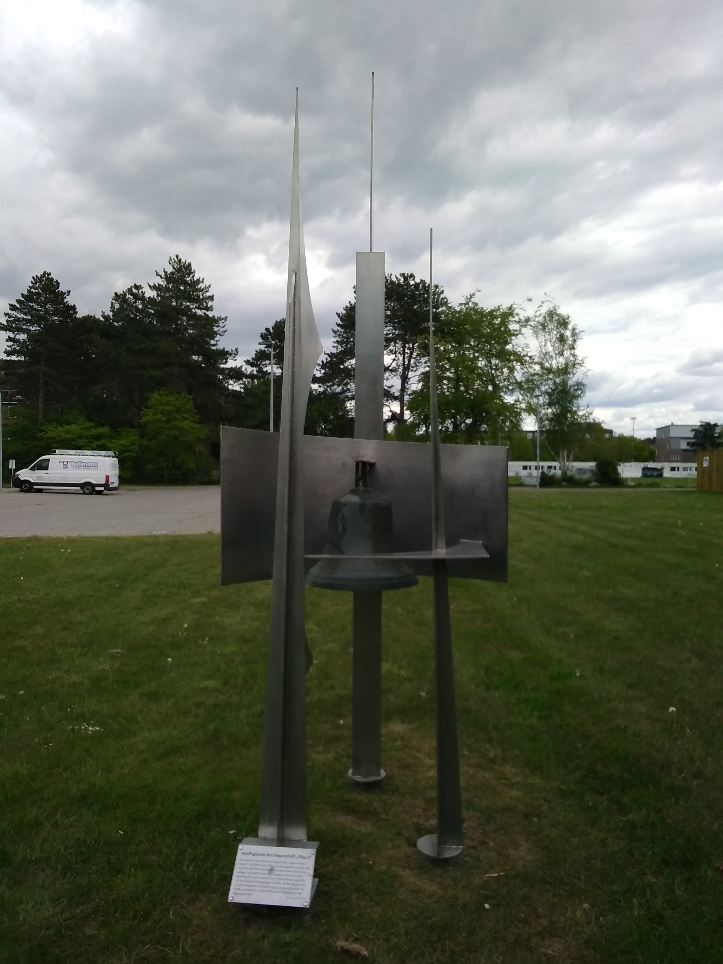 Schiffsglocke Elbe 2 zwischen dem neuen Hallenbad und der Vierfeld-Sporthalle (Baustelle)