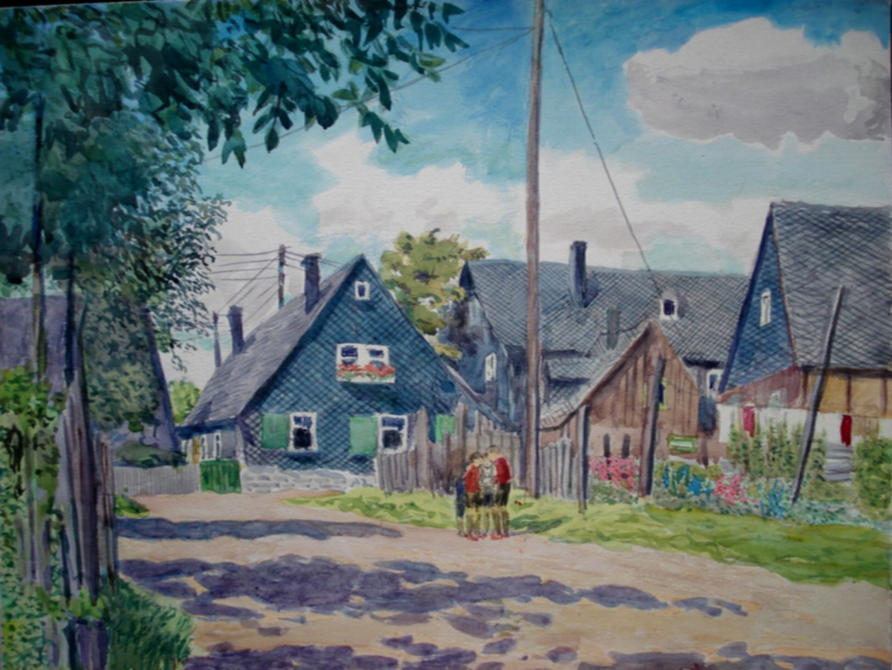Dorfidyll, Aquarell, 30x38 cm