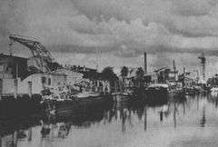 Auf einem alten Luftbild finden sich auf voller Länge des Lentzkais sieben Krane. Davon steht noch einer.