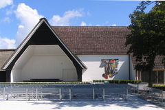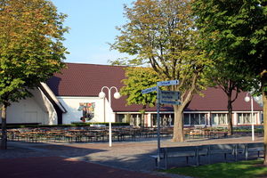 Baulich wurden eine Wandelhalle sowie ein Musikpavillon mit Freilichtbühne erstellt; beides strohgedeckt.