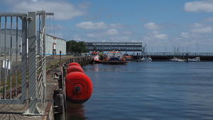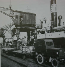 Lager- und Kühlhallen. Auf der Kaianlage Krähne und Schienenanbindung der Bundesbahn. 1 Wippdrehkräne (3 t), ein zweiter Kran wurde 2008 verschrottet.