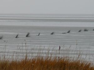 Für die Kennzeichnung von Fußwegen verwendet man zumeist der Einfachheit wegen einfache, in den Wattboden gesteckte Sträucher.